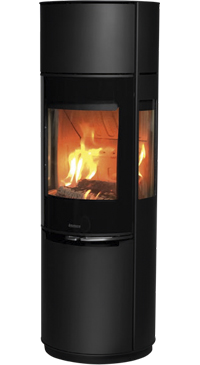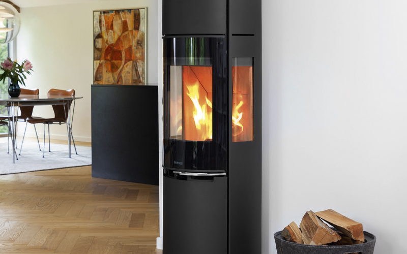 Durch zusätzliche Seitenscheiben und eine nur schmale Sprosse zwischen dem Glas in der Tür und dem Glas im Seitenbereich wurde die Glasfläche enorm vergrößert. Der Blick auf die Flammen war schon immer ein entscheidendes Kriterium – und aus diesem Grund sorgt eine wirkungsvolle Scheibenspülung dafür, dass sich an Front- oder Seitenglas kein Ruß absetzt. Ein zeitloses und elegantes Einrichtungselement für das moderne Heim.